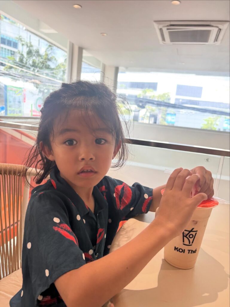 口蓋裂腸骨移植のオペ。パパが手術の間に近所のカフェに行きました!ミルクティーUSD2.8ドル。日本円に換算した440円位